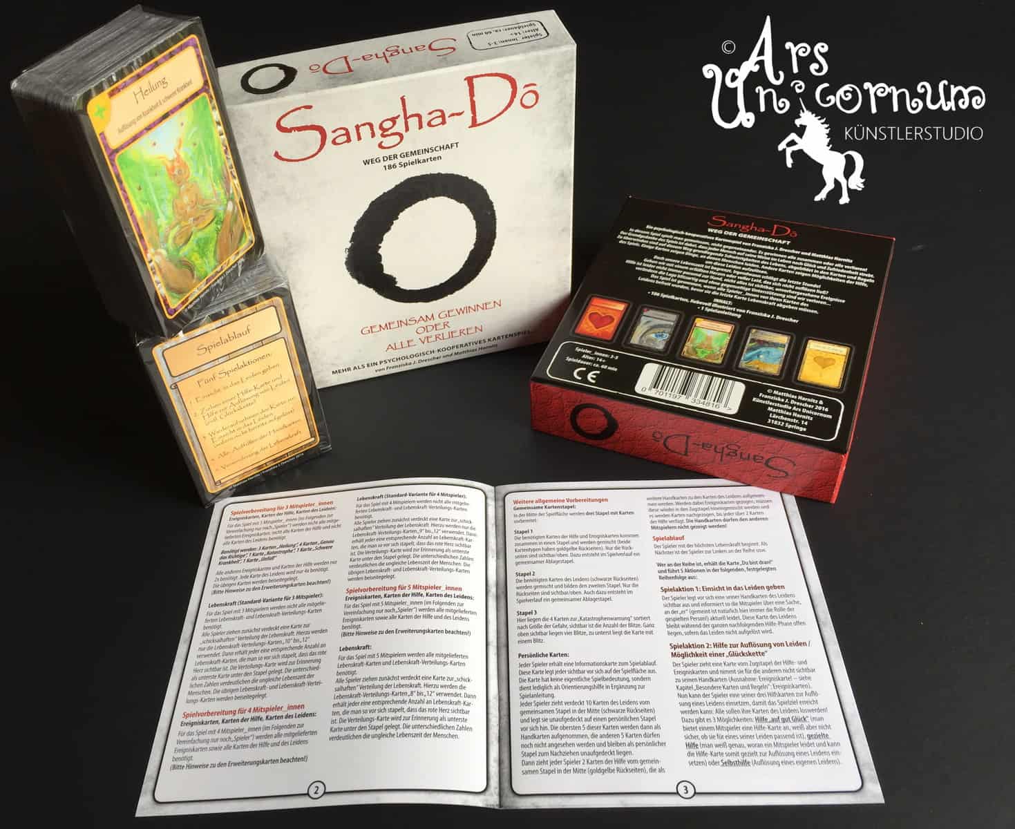 Die Spielkarten für das tolle Spiel „Sangha-Do“ wurden allesamt liebevoll von den beiden Entwicklerinnen Fransziska Drescher und Matthias Harnitz selbst gestaltet.